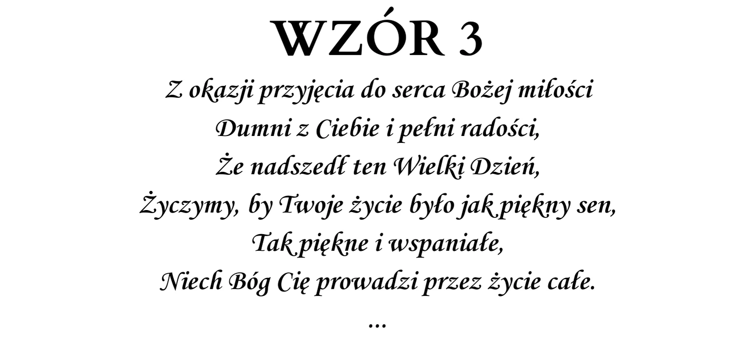 dedykacja (wzór do wyboru lub własna treść – o długości nieprzekraczającej przykładowego tekstu)